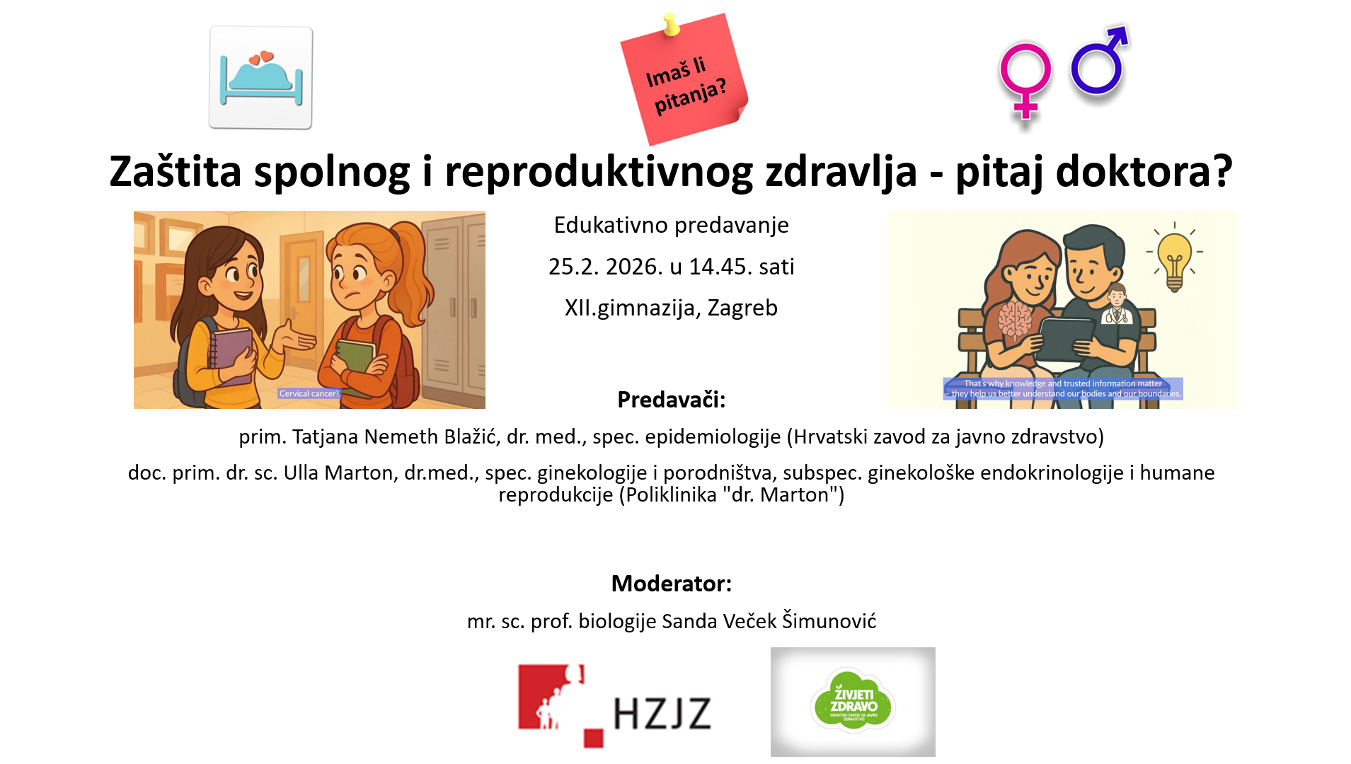 U Zagrebu, 25. veljače 2026. po četvrti je put održana edukativna radionica za učenike od 1. do 3. razreda srednje škole u XII. gimnaziji u Zagrebu, ovaj put pod nazivom „Zaštita spolnog i reproduktivnog zdravlja – pitaj doktora?“