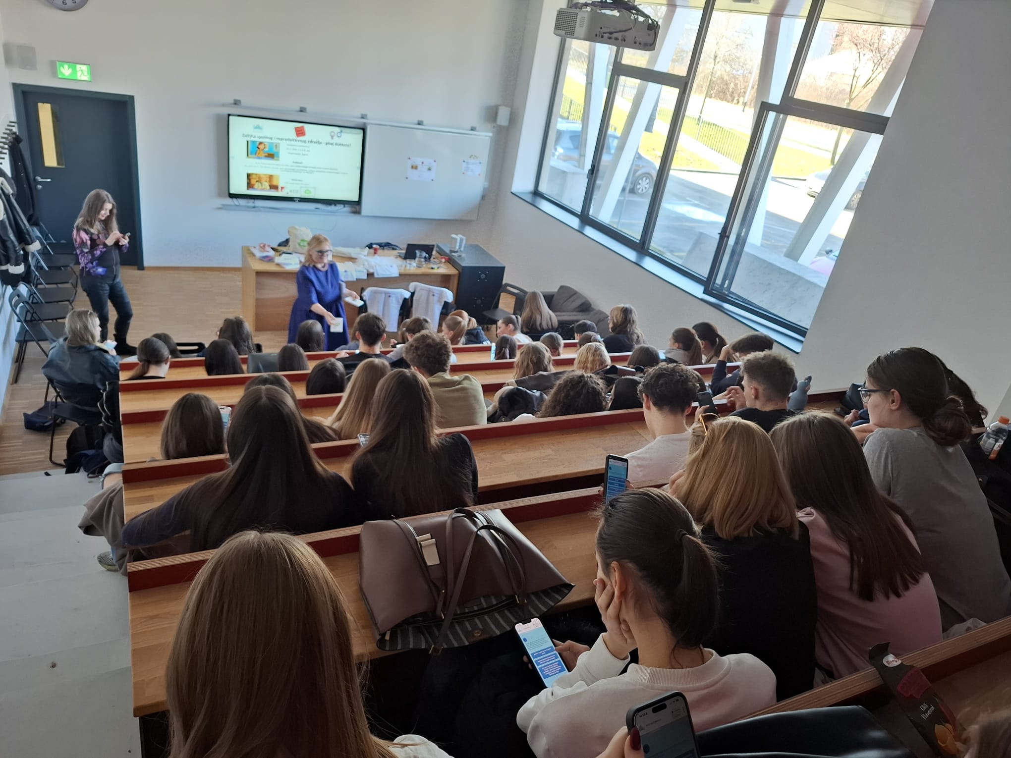 Slijedilo je interaktivno predavanje tijekom kojeg su dr. Marton i dr. Nemeth Blažić odgovarale na dodatne upite učenika. Na kraju su liječnice učenicima pokazale dostupne izvore za daljnje informiranje, ako žele i imaju dodatna pitanja: edukativne videe izrađene u sklopu projekta Before Time i digitalnu AI asistenticu za ginekološku pismenost- Gina, koji su dostupni na slijedećim poveznicama: Before Time i Gina- AI asistentica za ginekološku pismenost.