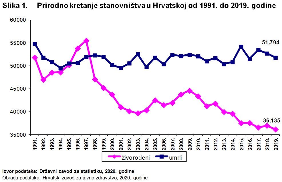 Od 1991. godine u Hrvatskoj bilježimo više umrlih nego rođenih, odnosno „prirodni pad“ stanovništva.
