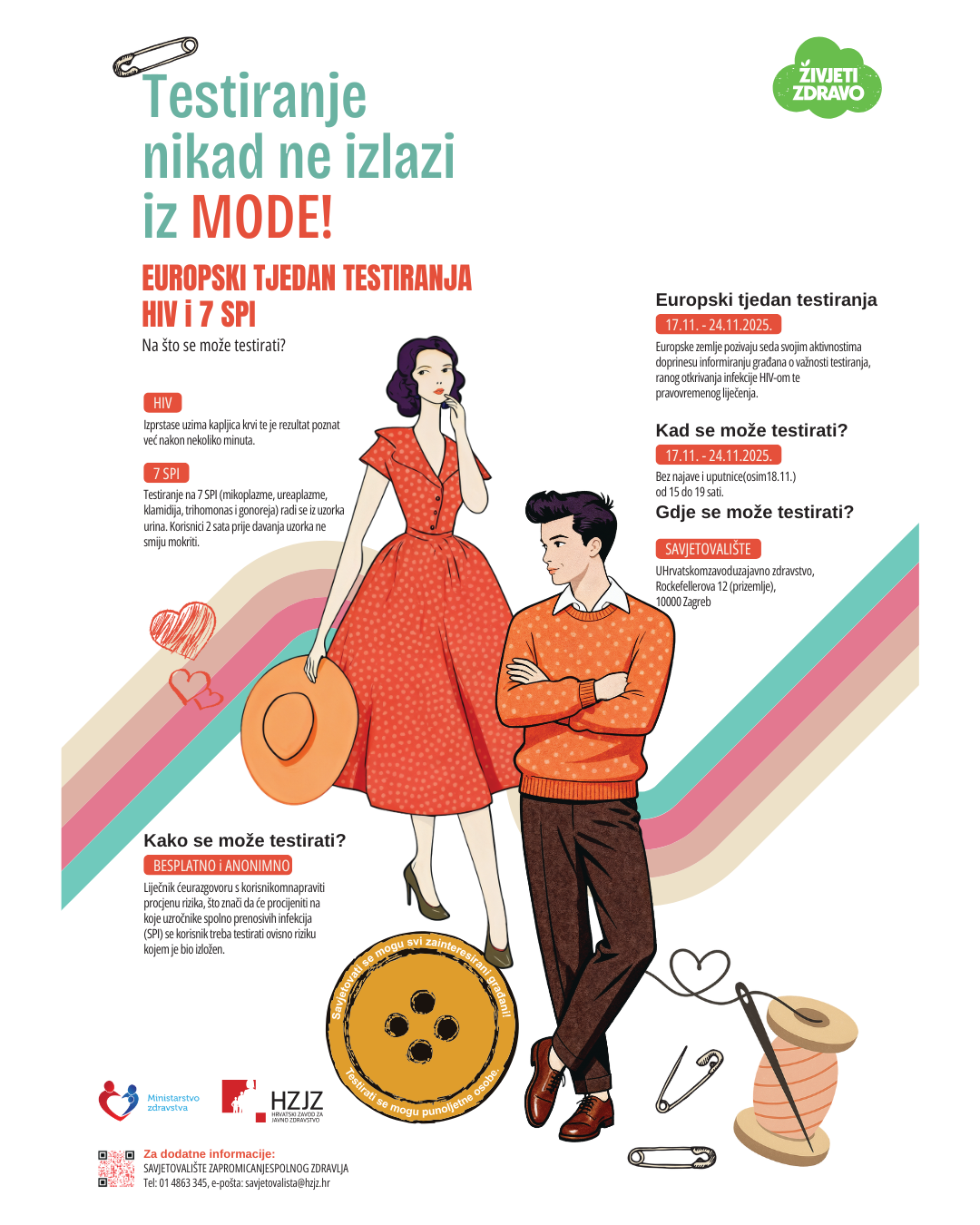 Služba za promicanje zdravlja Hrvatskog zavoda za javno zdravstvo, u sklopu Nacionalnog programa Živjeti zdravo pridružuje se ETW-u provođenjem besplatnog i anonimnog testiranja na HIV brzim testom, čiji rezultat je poznat već nakon nekoliko minuta.