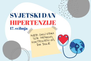 Svjetski dan hipertenzije Objavljeno: 17. svibnja 2024. Svjetski dan hipertenzije obilježava se 17. svibnja 2024. s temom „Mjeri svoj krvni tlak pravilno, kontroliraj ga i živi dulje“,...